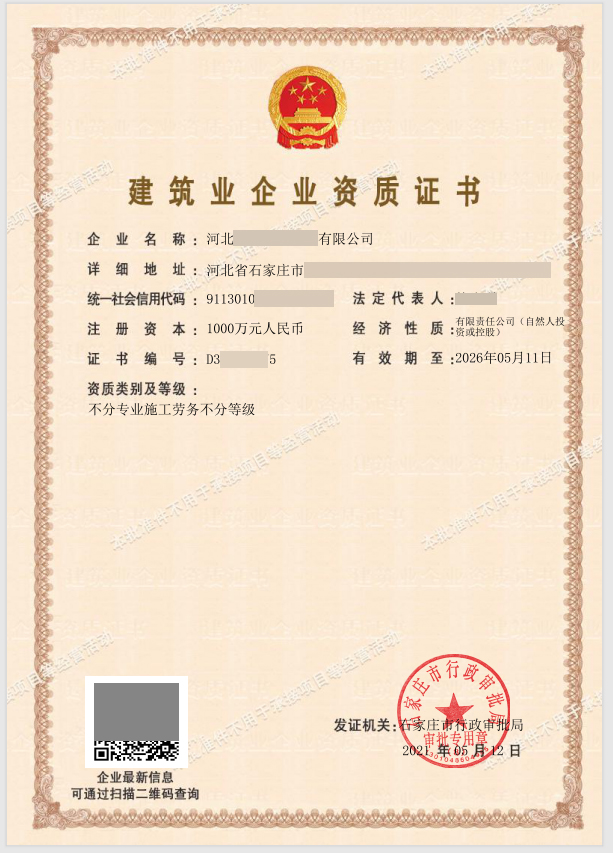 不分專業(yè)施工勞務(wù)資質(zhì)辦理成功案例