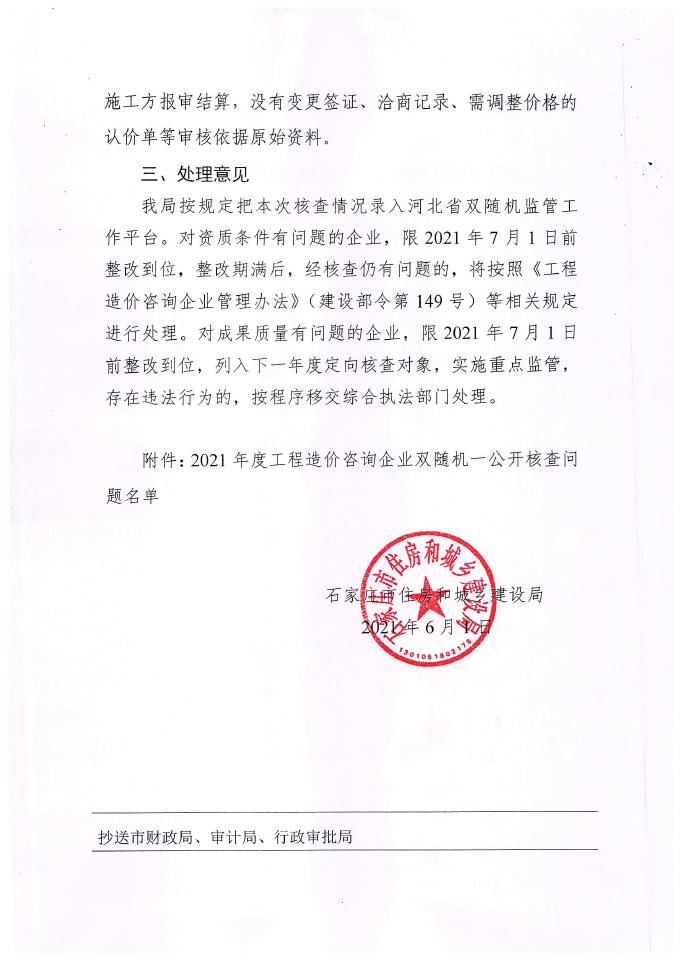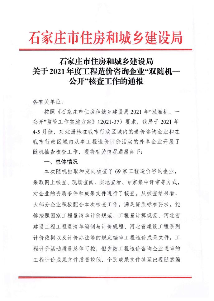 2021年度工程造價咨詢企業(yè)“雙隨機,一公開”核查工作情況的通報