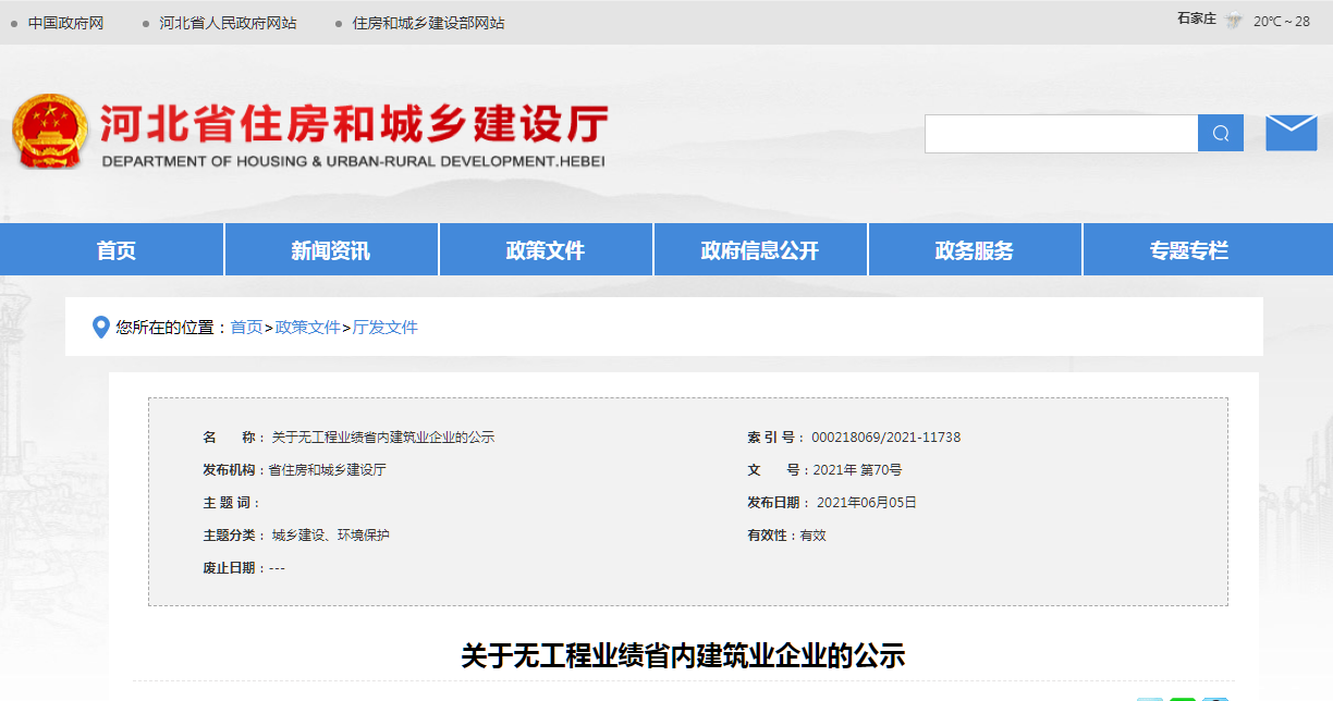 為進一步規(guī)范省內(nèi)建筑業(yè)企業(yè)市場行為,推動我省建筑業(yè)高質(zhì)量發(fā)展,現(xiàn)對2019-2020年度無工程業(yè)績省內(nèi)建筑業(yè)企業(yè)予以公示(企業(yè)名單詳見附件)。
