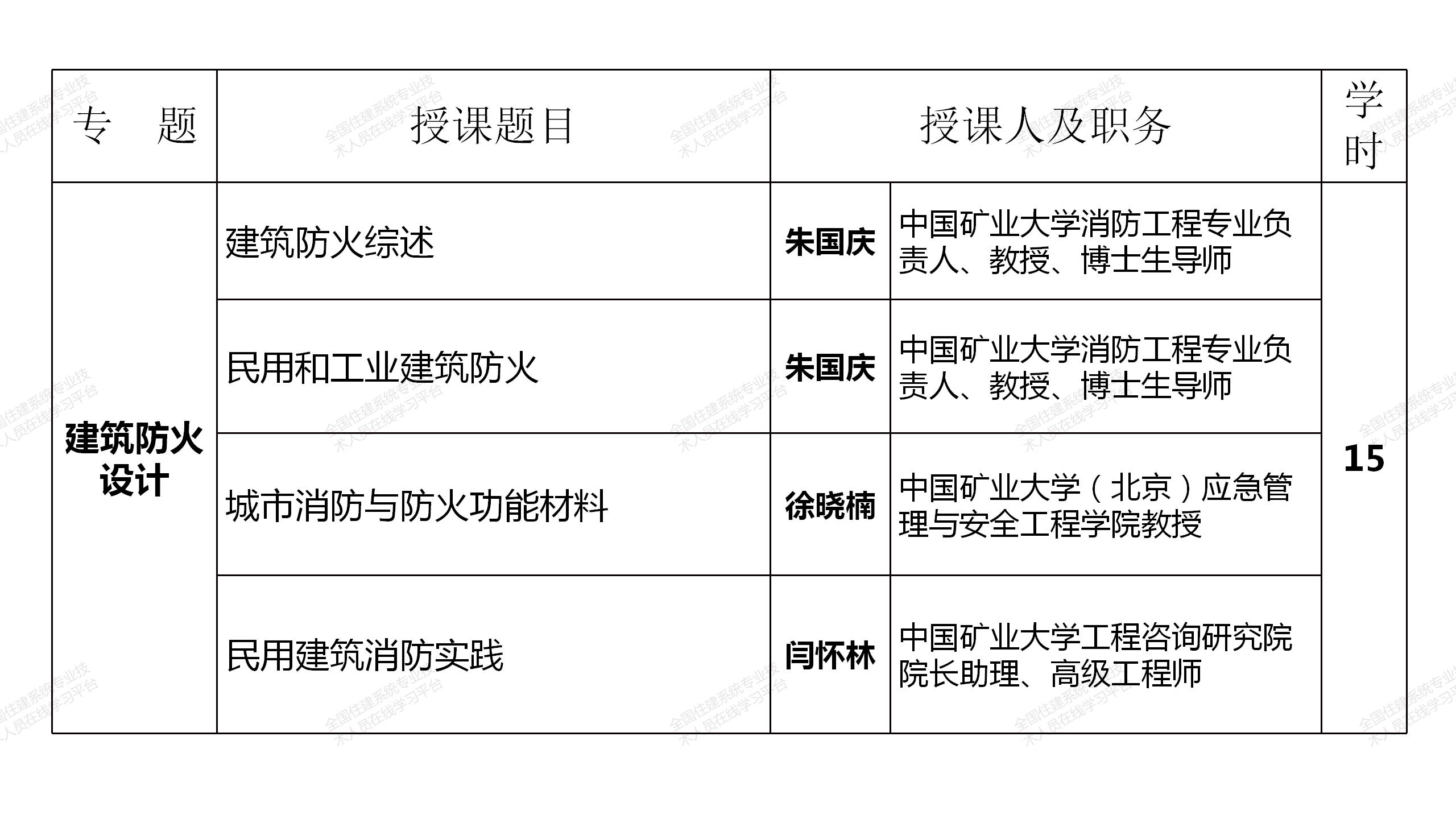 網(wǎng)絡(luò)選修課程由中國(guó)工程院院士、全國(guó)工程勘察設(shè)計(jì)大師和建筑領(lǐng)域著名專家、住房和城鄉(xiāng)建設(shè)部有關(guān)領(lǐng)導(dǎo)主講,分政策解讀、城市設(shè)計(jì)與城市品質(zhì)提升、建筑創(chuàng)新與文化傳承、綠色建筑與建筑節(jié)能、智能建造與建筑工業(yè)化和建筑防火設(shè)計(jì)6個(gè)專題共85學(xué)時(shí)(見附表),注冊(cè)建筑師可根據(jù)自身需要選擇其中40學(xué)時(shí)學(xué)習(xí),其中10學(xué)時(shí)的政策解讀專題課程免費(fèi)提供,并可計(jì)入繼續(xù)教育學(xué)時(shí)。課程緊密結(jié)合國(guó)務(wù)院、住房和城鄉(xiāng)建設(shè)部近年發(fā)布的有關(guān)行業(yè)改革、裝配式建筑、建筑工業(yè)化、智能建造等重大政策,緊跟國(guó)家形勢(shì)發(fā)展需要,是一套集權(quán)威性、系統(tǒng)性、針對(duì)性、實(shí)效性于一體的建筑領(lǐng)域頂尖課程。選修課程于2021年7月12日在“全國(guó)住建系統(tǒng)專業(yè)技術(shù)人員在線學(xué)習(xí)平臺(tái)”(http://www.mayortraining.net)正式上線。