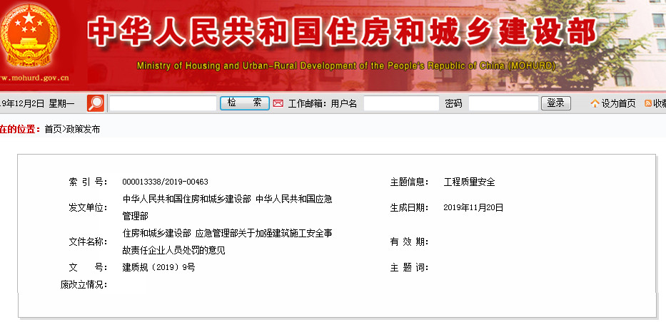 住房和城鄉(xiāng)建設(shè)部 應(yīng)急管理部關(guān)于加強(qiáng)建筑施工安全事故責(zé)任企業(yè)人員處罰的意見