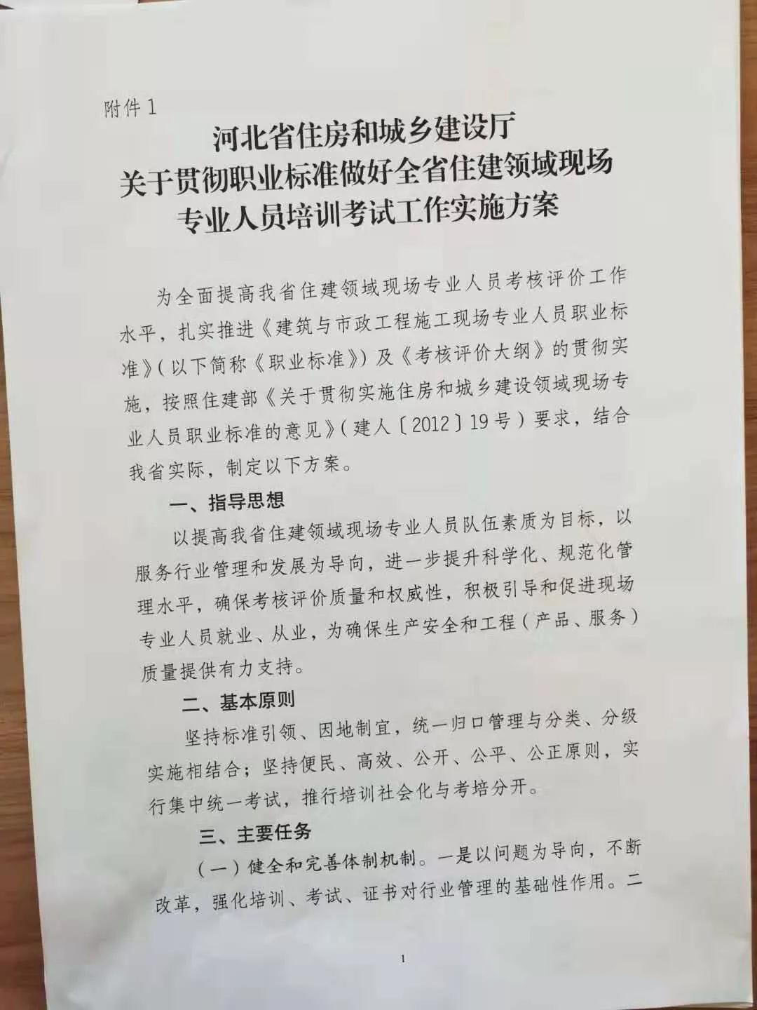 河北省住房和城鄉(xiāng)建設(shè)廳關(guān)于貫徹職業(yè)標(biāo)準(zhǔn)做好全省住建領(lǐng)域現(xiàn)場專業(yè)人員培訓(xùn)考試工作實(shí)施方案